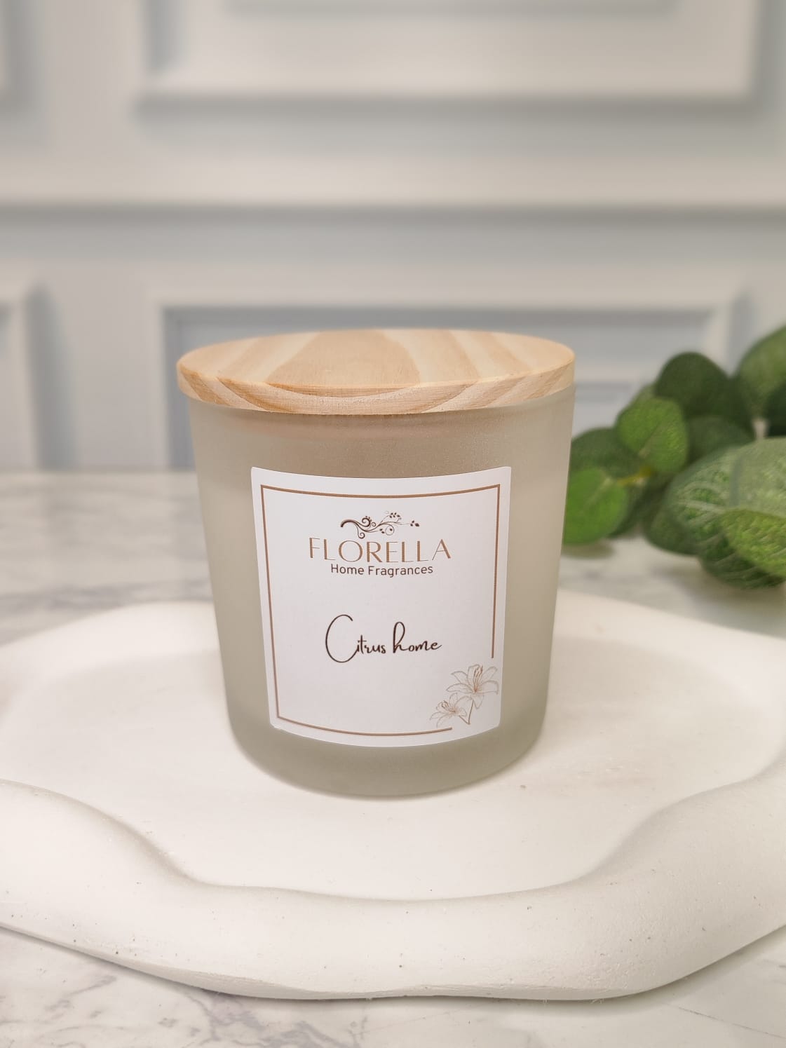 Vela aromática 190g - frasco de vidro jateado, acompanha tampa de madeira