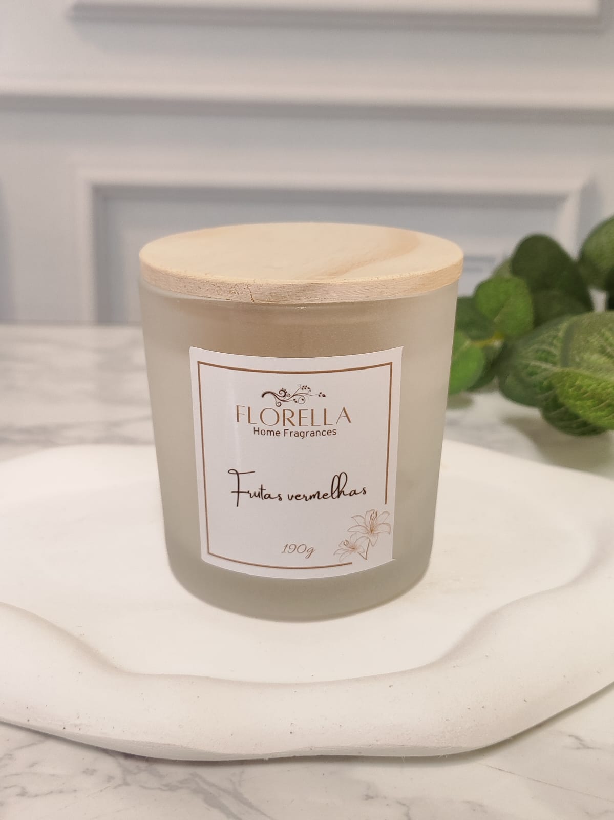 Vela aromática 190g - frasco de vidro jateado, acompanha tampa de madeira